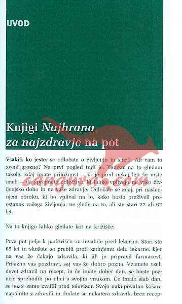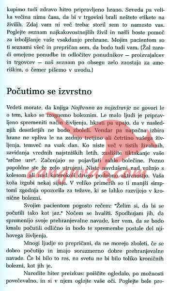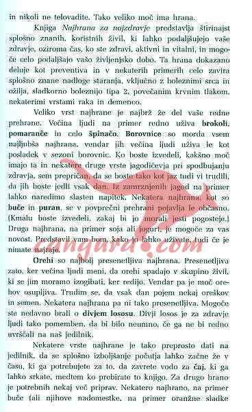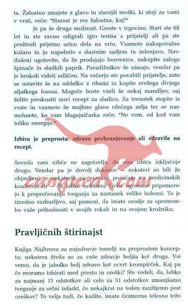Knjiga predstavlja štirinajst splošno znanih, koristnih živil, ki so najboljša za naše zdravje in lahko celo podaljšujejo naše življenje. Ta hrana dokazano deluje kot preventiva in v nekaterih primerih celo zavira nadloge staranja, vključno z najhujšimi boleznimi današnjega časa. Knjiga temelji na izsledkih kliničnih raziskav vodilnih zdravnikov in raziskovalcev na svetu in kar kliče po tem (in tako je tudi strokovno mnenje), da koncept Najhrane za najzdravje sprejmejo tudi vse zdravstvene ustanove in splošna javnost. Vsebuje tudi edinstvene recepte in jedilnike…
