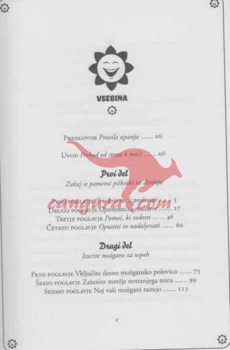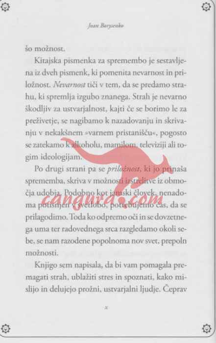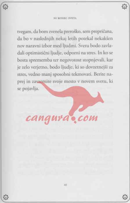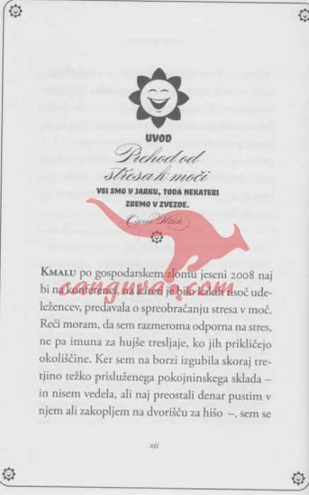 Knjigo sem napisala, da bi vam pomagala premagati strah, ublažiti stres in spoznati, kako mislijo in delujejo prožni, ustvarjalni ljudje. Čeprav tvegam, da bom zvenela preroško, sem prepričana, da bo v naslednjih nekaj letih potekal nekakšen nov naravni izbor med ljudmi. Svetu bodo zavladali optimistični ljudje, odporni na stres. In ko se bosta sprememba ter negovotost stopnjevali, kar je zelo verjetno, bodo ljudje, ki so dovzetnejši za stres, vedno manj sposobni tekmovati. Zavzemite svoje mesto v novem svetu, ki se pojavlja.
