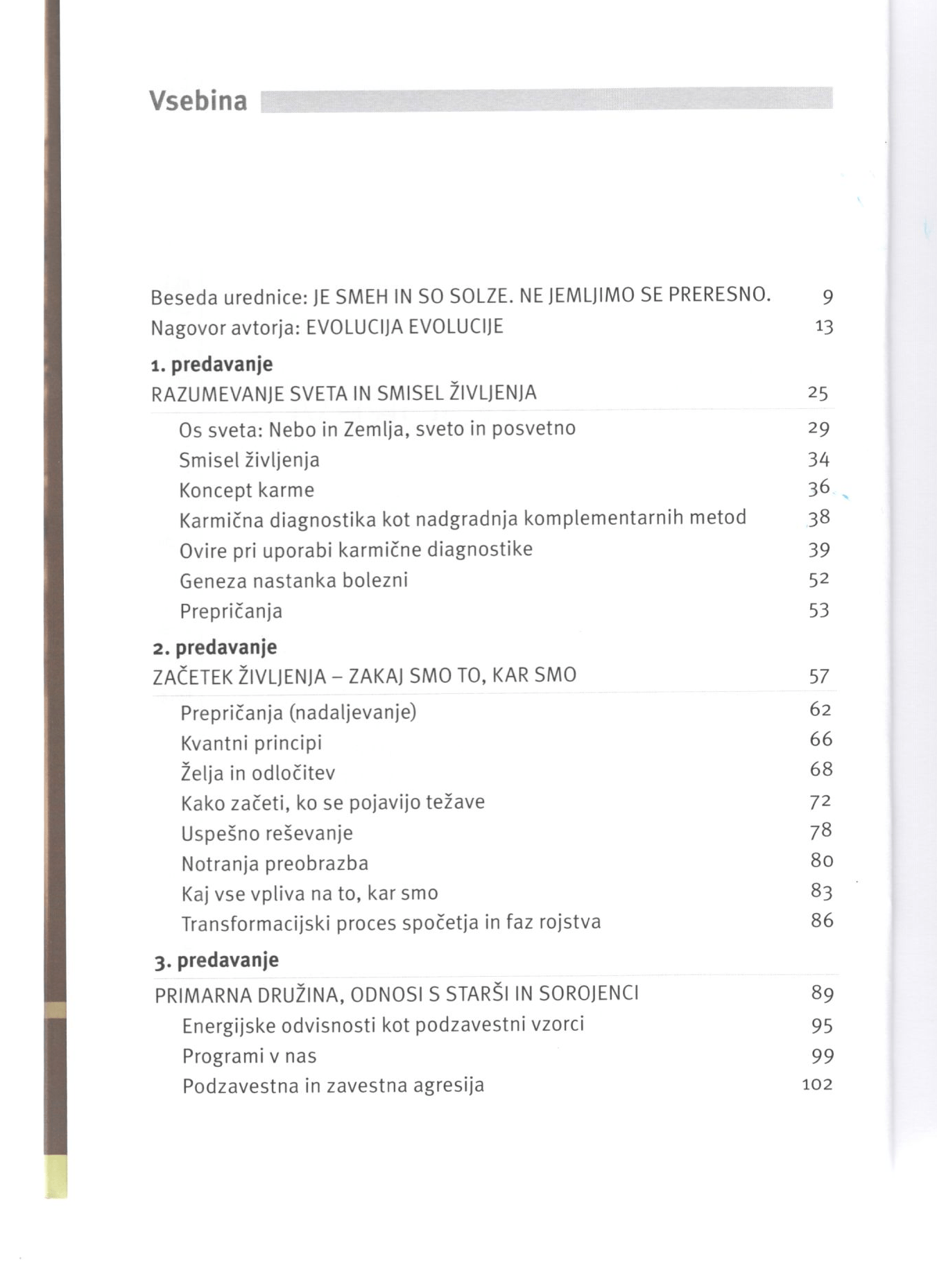 Svoje delo je gradil okoli karmične diagnostike, ki je tako rdeča nit te knjige. Obiskovalcem predavanj in bralcu skuša približati idejo karmične diagnostike, po kateri je vse, kar se posamezniku dogaja, odsev njegove notranjosti in s tem naravne potrebe po duhovnem zorenju.