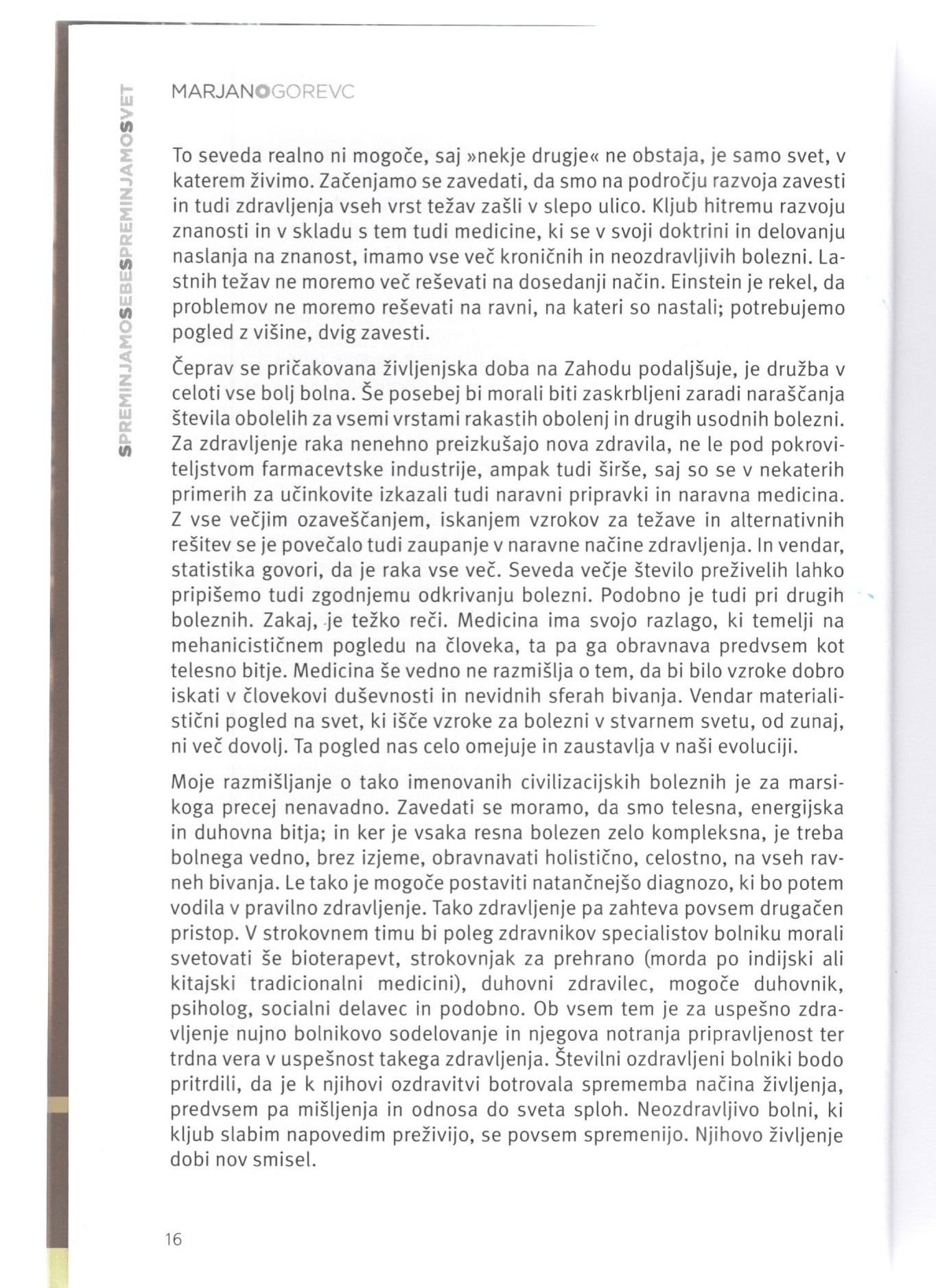Prvo, kar je treba sprejeti, je celostni pogled na življenje, kar pomeni razumevanje, da smo telesna, energijska in duhovna bitja. Nujno je razumevanje, od kod prihajamo, ohranjanje smisla življenja in razumevanje prepleta telesnega, umskega in duhovnega v nas, razlaga Marjan Ogorevc.