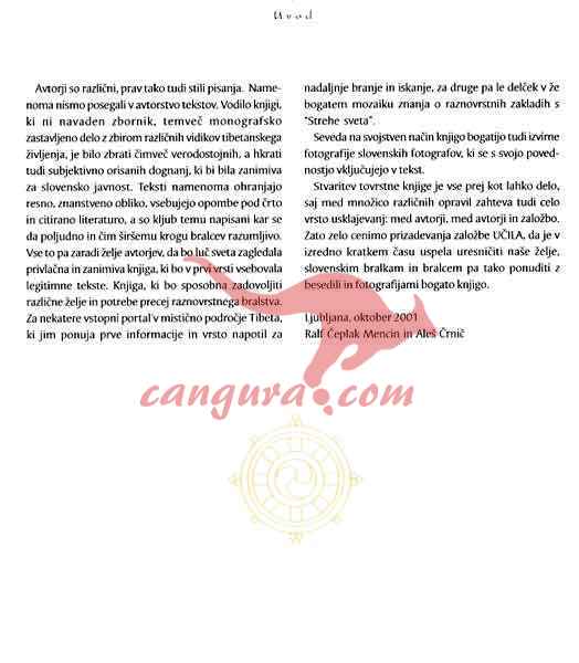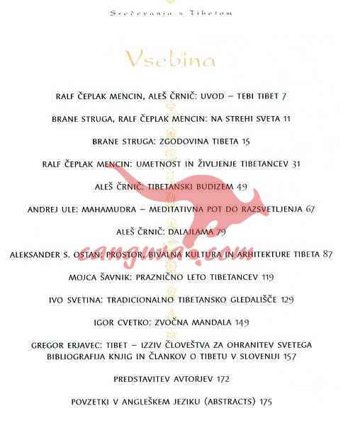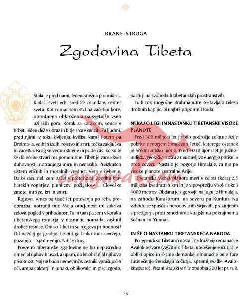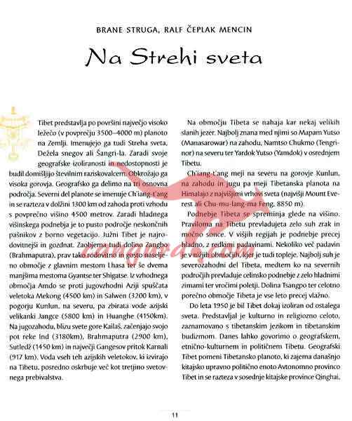 Ta izjemna knjiga je delo devetih slovenskih avtorjev, pospremljeno na knjižni trg s predgovorom Njegove svetosti. V njej je Tibet predstavljen z besedo in sliko, zgodovinsko, geografsko in kulturno. Spoznamo ga kot zakladnico znanj in modrosti, sočutje neskončnih radosti, izvir pozitivne energije. Vse do 20. stoletja je bil svobodna dežela na strehi sveta, dežela velikih junakov in učenjakov, dežela, katere reke odžejajo tretjino svetovnega prebivalstva…
