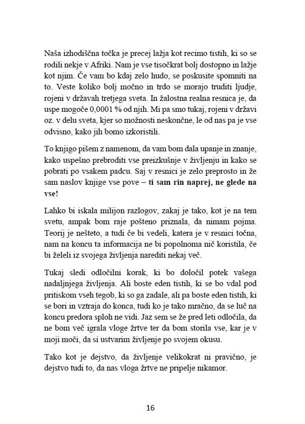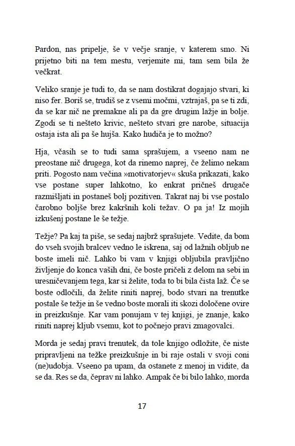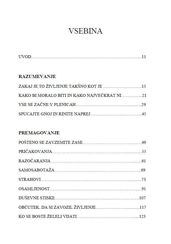 Nasveti in navodila, kako se soočiti in preživeti vse usrane situacije, ki jih v življenju doživimo ter kako kljub vsemu sranju, ki nas omejuje in zaznamuje, riniti naprej, doseči zastavljene cilje in svoje življenje dvigniti na maksimalno raven zadovoljstva.