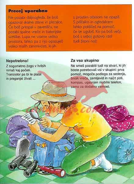 V skalovju lahko tudi plezaš. Samo previdno! Brez čelade, vrvi in še druge opreme ter spremstva staršev, se raje ne loti tega podviga. V gorah spoznaš tudi vodo; od izvira, potoka, jezera, reke; za kaj vse je uporabna in kako je lahko nevarna.